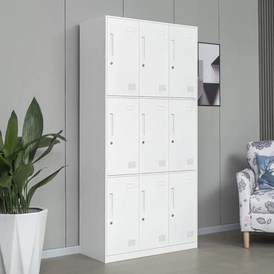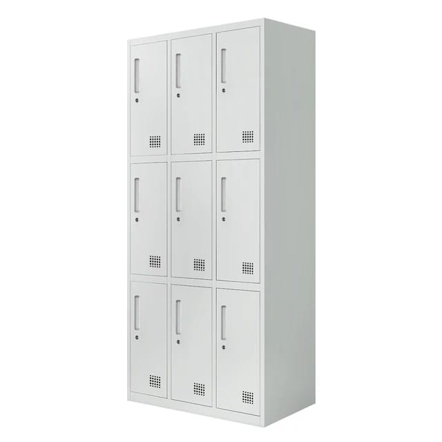 The 9-Door Staff Lockers are designed with built-in ventilation slots that allow proper air circulation inside each compartment. This prevents moisture buildup, keeps stored items fresh, and reduces unpleasant odors—especially important in gyms, schools, or factories where items like clothes or shoes may be stored for extended periods.